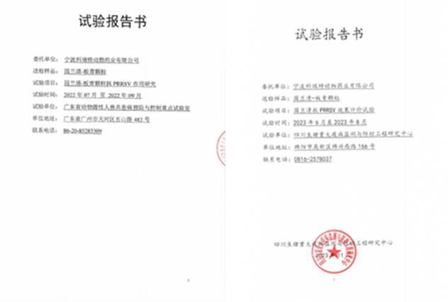 2023年6~8月,寧波科瑞特委托四川生豬重大疫病監(jiān)測(cè)與防控工程研究中心,進(jìn)行了《園蘭清防控PRRSV效果評(píng)價(jià)試驗(yàn)》,試驗(yàn)表明園蘭清具有較好的免疫調(diào)節(jié)作用,能顯著降低PRRSV所致的免疫抑制。