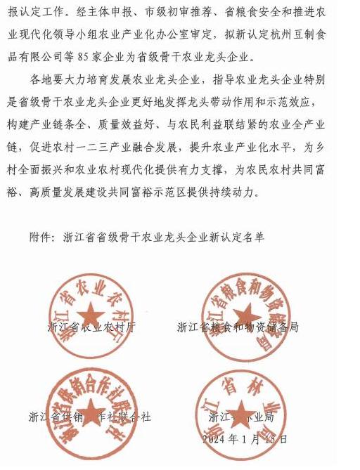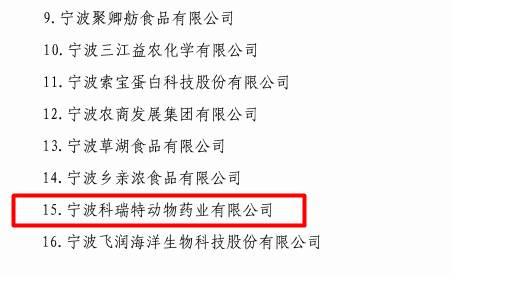 近日,根據(jù)《浙江省省級骨干農(nóng)業(yè)龍頭企業(yè)認定和運行監(jiān)測管理辦法》(浙農(nóng)產(chǎn)發(fā)〔2022〕5號)規(guī)定,經(jīng)主體申報、市級初審?fù)扑]、省糧食安全和推進農(nóng) 業(yè)現(xiàn)代化領(lǐng)導(dǎo)小組農(nóng)業(yè)產(chǎn)業(yè)化辦公室審定,寧波科瑞特動物藥業(yè)有限公司成功認定“省級骨干農(nóng)業(yè)龍頭企業(yè)”。